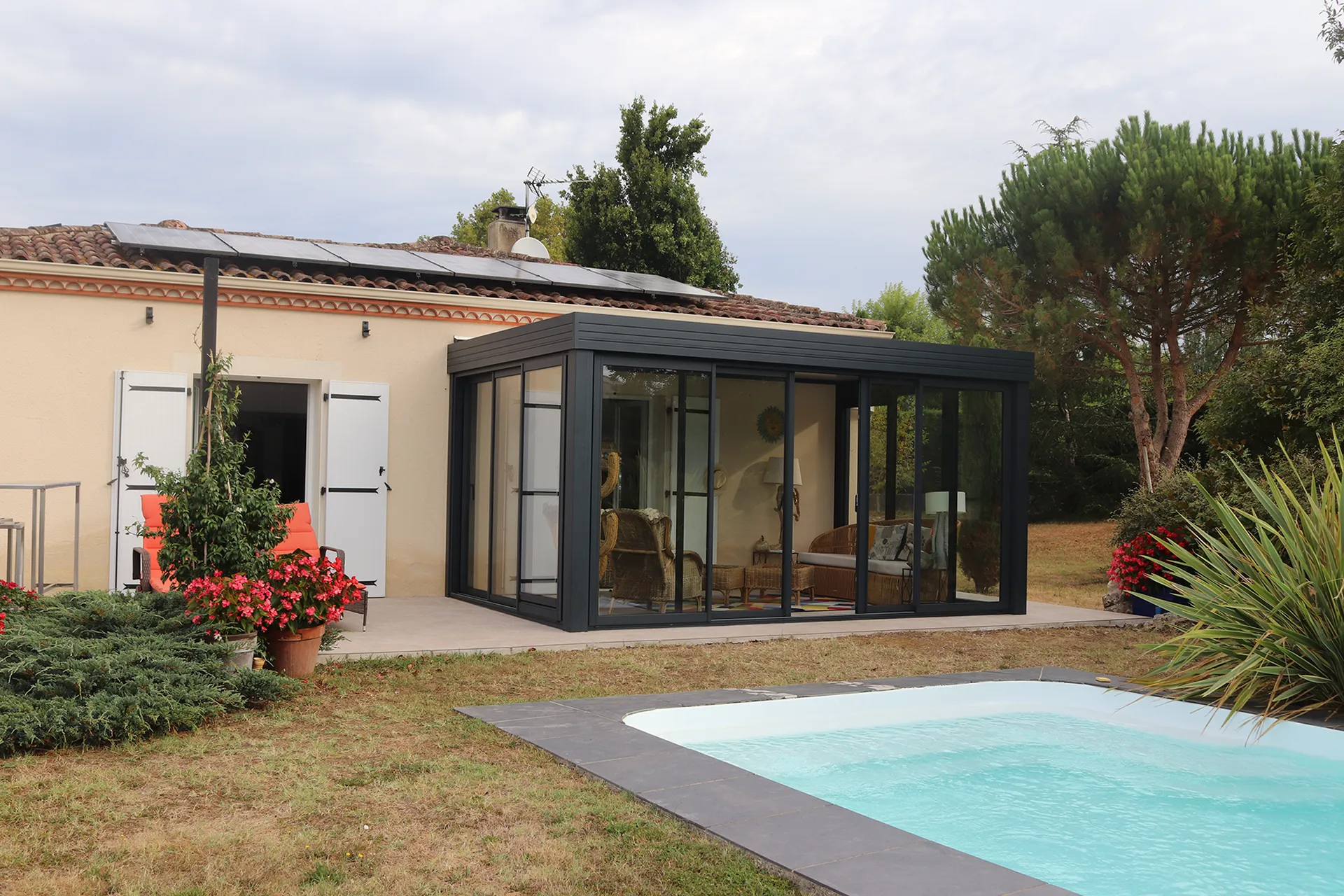 Agrandir votre maison dans le Sud-Ouest, c’est créer une nouvelle pièce à vivre parfaitement intégrée à l’existant, tout en répondant à vos besoins de confort et de luminosité. Plusieurs solutions d’extensions aluminium sur mesure permettent d’adapter le projet à votre architecture et à votre usage. L’extension à toit plat séduit par ses lignes contemporaines et son esthétique épurée, idéale pour une écriture moderne. La véranda aluminium traditionnelle à toiture en pente offre une intégration plus classique, avec un fort apport de lumière naturelle. Enfin, l’extension à toit rétractable permet de moduler l’ouverture selon les saisons, offrant un espace évolutif entre intérieur et extérieur. Chaque configuration est étudiée selon l’orientation, les volumes existants et le niveau de performance thermique recherché, afin de créer une véritable pièce supplémentaire confortable toute l’année.